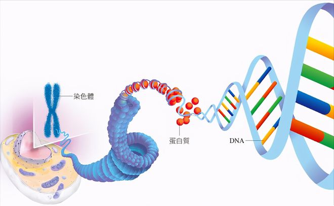 人类每个细胞 (精子和卵子细胞除外) 都有23对染色体,每一对染色体都是一条来自父亲,一条来自母亲。染色体上分布着许多的基因,掌管着我们身体所有的大小功能。